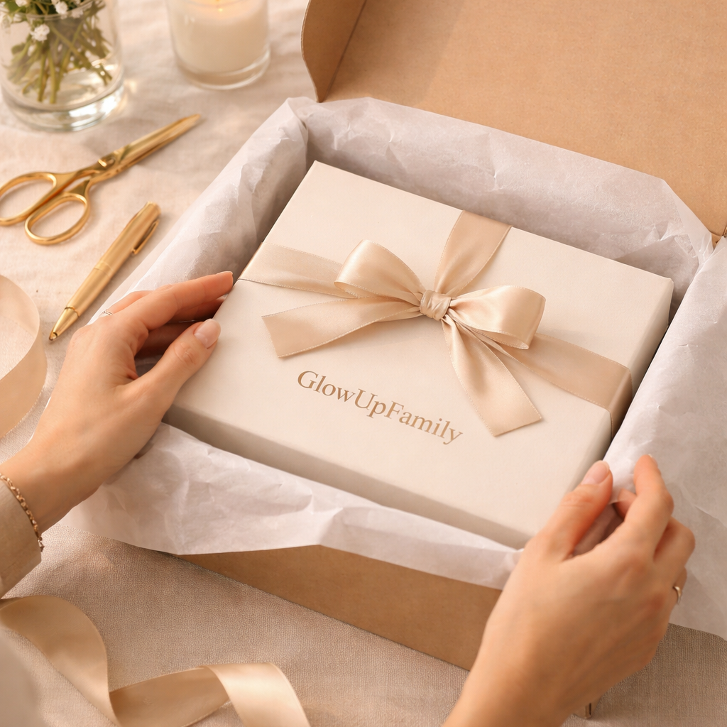 Chez GlowUpFamily, nous croyons que prendre soin de soi n’est pas égoïste. C’est le plus beau cadeau que tu puisses offrir à ta famille.